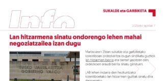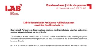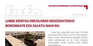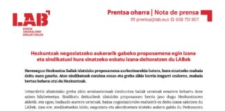 LABek bide mobilizatzaileari ekingo dio akordioa osotasunean bete ezean. Horretarako, afiliatuekin zein zentroetan asanbladak egiten jarraituko dugu langileekin batera. Era berean, gainontzeko sindikatuei ere...