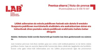 LABek adierazten du eskola publikoen fusioek ezin dutela D ereduko ikaspostu...