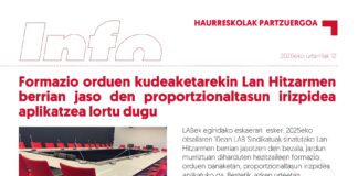 LABek egindako eskaerari esker, 2025eko otsailaren 10ean LAB Sindikatuak sinatutako Lan Hitzarmen berrian jasotzen den bezala, jardun murriztuan diharduten hezitzaileen formazio orduen banaketan, proportzionaltasun...