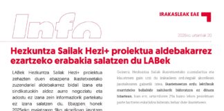 LABek Hezkuntza Sailak Hezi+ proiektua zehazten duen ebazpena ikastetxeetako zuzendariei aldebakarrez bidali izana eta sindikatuokin aldez aurre negoziatu eta adostu ez izana zein informaziorik...