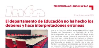 Personal de Servicios de la CAV: El departamento de Educación no...