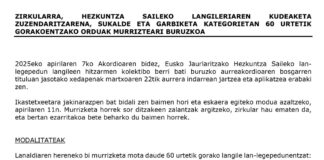 Sukalde eta Garbiketan 60 urtetik gorakoentzako orduak murrizteari buruzko zirkularra