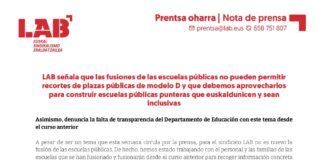 LABek adierazten du eskola publikoen fusioek ezin dutela D ereduko ikaspostu...