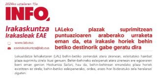 Irakasleak EAE: LALeko plazak suprimitzean puntuazioaren araberako urraketa eman da, eta...