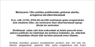 Martxoaren 12ko zerbitzu publikoetako grebaren atariko, erregistroa eta elkarretaratzeak