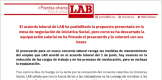 El acuerdo laboral de LAB ha posibilitado la propuesta presentada en...