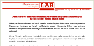 LABek adierazten du Kristau Eskola eta IZEA Patronalek lan gatazka gainditzeko...