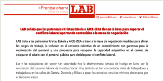 LAB señala que las patronales Kristau Eskola e AICE-IZEA tienen la...