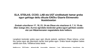 ELA, STEILAS, CCOO, LAB eta UGT sindikatuek hamar greba egun gehiago...