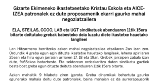 Gizarte Ekimeneko ikastetxeetako Kristau Eskola eta AICE-IZEA patronalek ez dute proposamenik...
