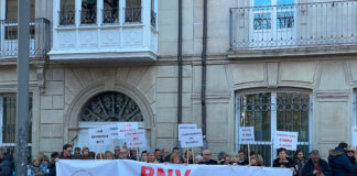 LABek bat egin du gaur Adostuz kolektiboak Gasteizko parlamentu aurrean egin...