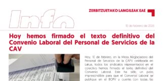 Personal de Servicios de la CAV: Hoy hemos firmado el texto...