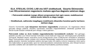 Gizarte Ekimeneko sindikatuok Lan Hitzarmenaren negoziazio mahaia agortua dagoela salatzen dugu