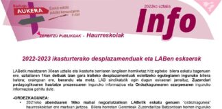 2022/23 ikasturterako desplazamenduak eta LABen eskaerak Haurreskolak Partzuergoko hurrengo mahaiari begira