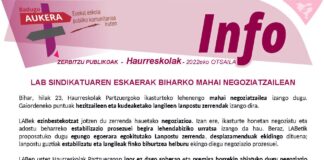 LABen eskaerak Haurreskolak Partzuergoko lehenengo mahai negoziatzailerako