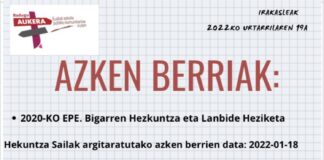 EAEko Bigarren Hezkuntza eta Lanbide Heziketaren 2020ko EPEren inguruko azken berriak
