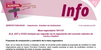 Mahai negoziatzailea: ELA, UGT eta CCOOk uko egin diote bigarren aldiz...