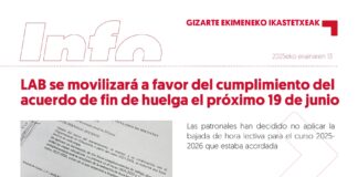 Gizarte Ekimeneko Ikastetxeak: LAB greba bukatzeko akordioa betetzearen alde mobilizatuko da...