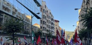 12. greba eguna bete denean Gizarte Ekimeneko langileek Gasteizko kaleak bete...