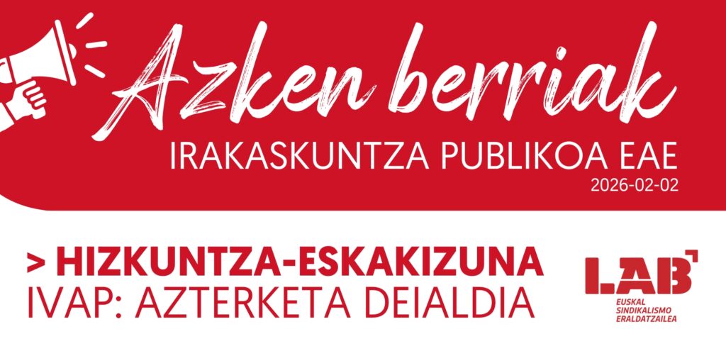 - EBAZPENA, 026ko urtarrilaren 23koa, Administrazio Publikoaren Euskal Institutuko zuzendariarena, hizkuntza-eskakizunak egiaztatzeko 2026ko lehenengo ohiko deialdiko azterketetarako deia egiten duena.