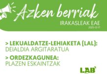 Azken Berriak: Ordezkabidea. Calendario oferta de plazas