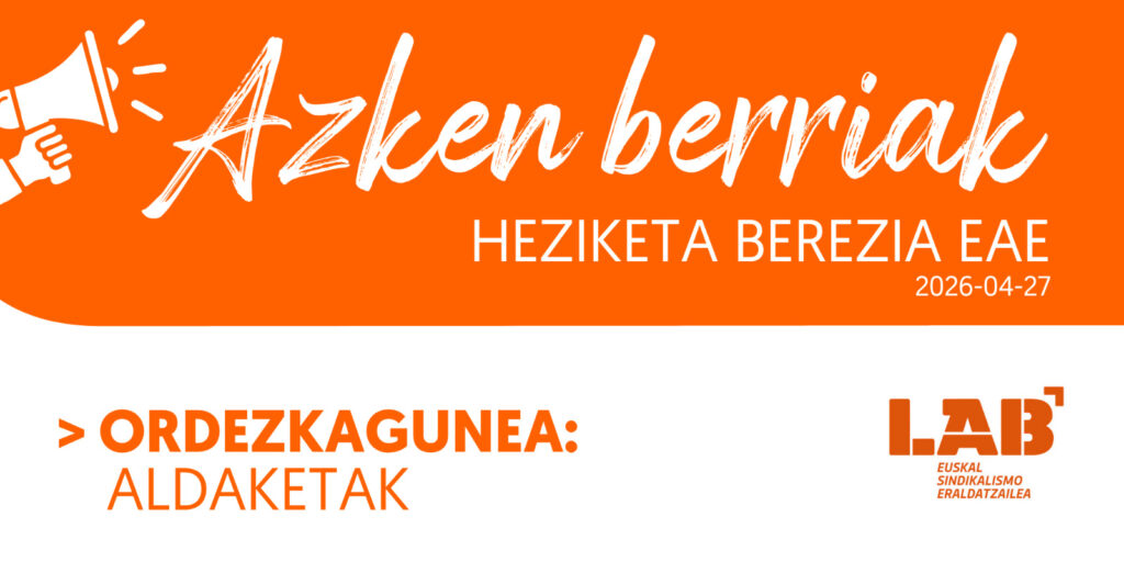 – Gogoratu berebiziko garrantzia duela edozein zerrendetan gaudela, Ordezkagunean (irakasle zein Heziketa berezian), Zerbitzuetako langileen Ordezkabidean zein Haurreskolak Partzuergoko Hezisarean lan egoera eguneratuta izatea.
