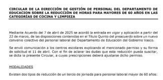 Correcciones convenio laboral del personal de cocina y limpieza del Departamento de Educación