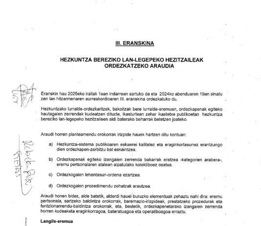 EAEko hezkuntza saileko lan-legepeko langileen lan hitzarmenaren akatsen zuzenketak