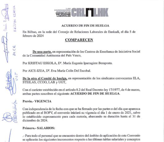 Gizarte Ekimeneko Ikastetxeak: Greba amaierako akordioa_ 2024ko otsaila