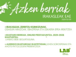 Azken Berriak: Zerbitzu-eginkizunak osasun arrazoiak direla medio, Ikastaro berriak eta Aurreko ikastaroak ikastetxean