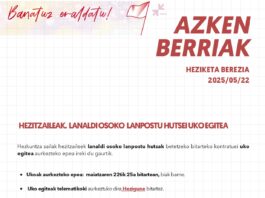 AZKEN BERRIAK: Lan-legepeko irakasleen eta hezitzaileen IX. hitzarmen kolektiboa eta irekita mantentzen diren zerrendak