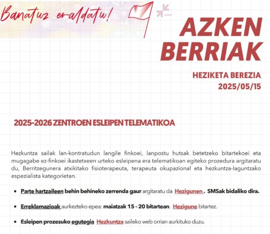 AZKEN BERRIAK: Lan-legepeko irakasleen eta hezitzaileen IX. hitzarmen kolektiboa eta irekita mantentzen diren zerrendak