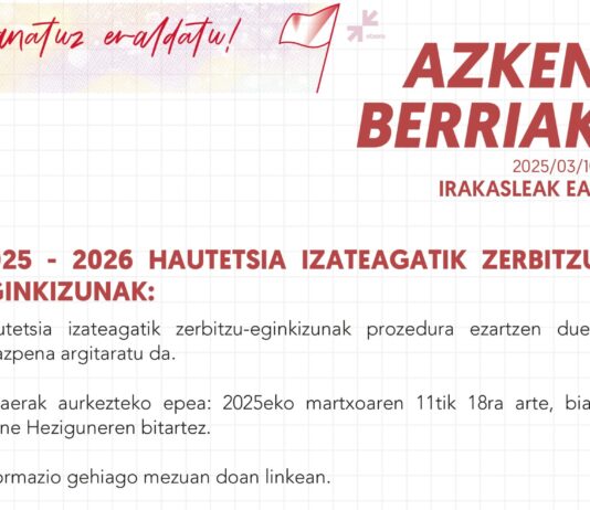 Azken Berriak | Irakasleak EAE: IRALE 2025-2026, Adinaren arrazoiengatiko murrizketa, EIMA, LPZ