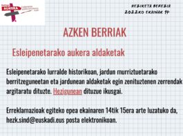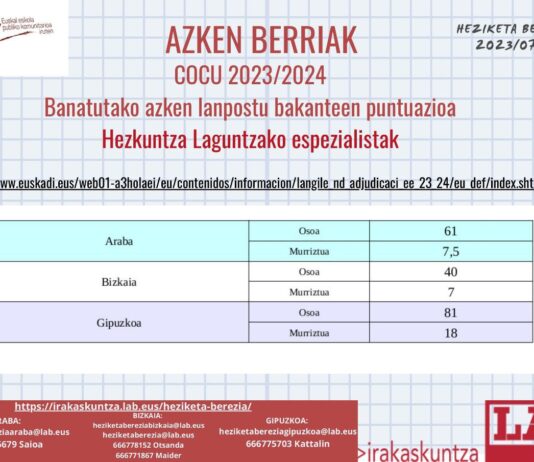Azken Berriak: Adinaren arrazoiarengatik irakastorduak murriztea (gozamen metatua), maisu-maistren lekualdatze lehiaketa...