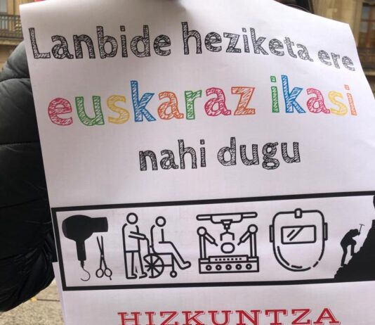 Hezkuntzak euskara gehiago behar duela aldarrikatzeko sinadura bilketarekin bat egin dugu
