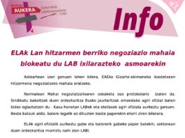 EAEko Gizarte Ekimeneko lan-hitzarmen berriko negoziazio mahaia blokeatu du ELAk