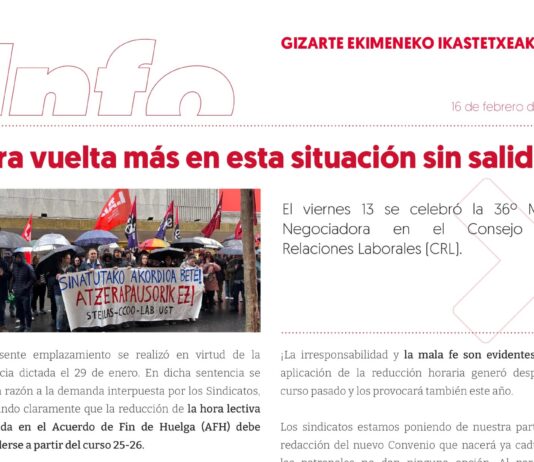 Centros de enseñanza de Iniciativa Social: nos hemos movilizado en Bilbo, antes de entrar a la mesa negociadora, para exigir que cumplan la sentencia
