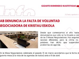 Centros de enseñanza de Iniciativa Social: Exigimos a Kristau Eskola que cumpla todos los puntos acordados en el Acuerdo de Fin de Huelga