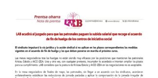 LAB acudirá al juzgado para que las patronales paguen la subida...