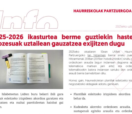 Haurreskolak Partzuergoa: 2025-2026 ikasturtea berme guztiekin hasteko prozesuak uztailean gauzatzea exijitzen dugu