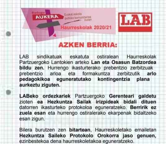 LAB sindikatua Hezkuntzan eta Irakaskuntzan