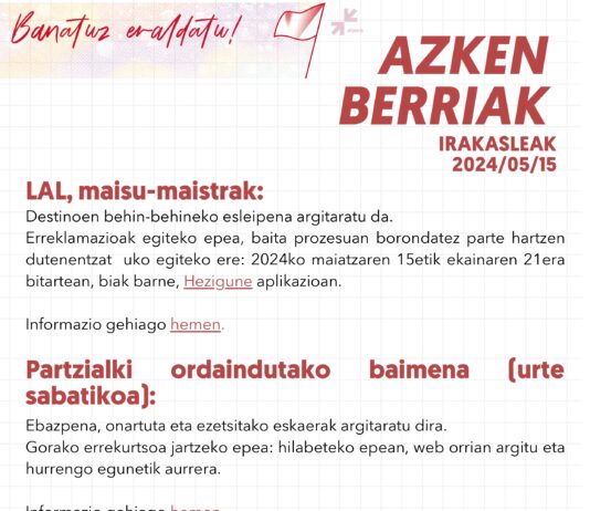 EAEko irakasleak: lekualdatze-lehiaketa eta partzialki ordaindutako baimenaz