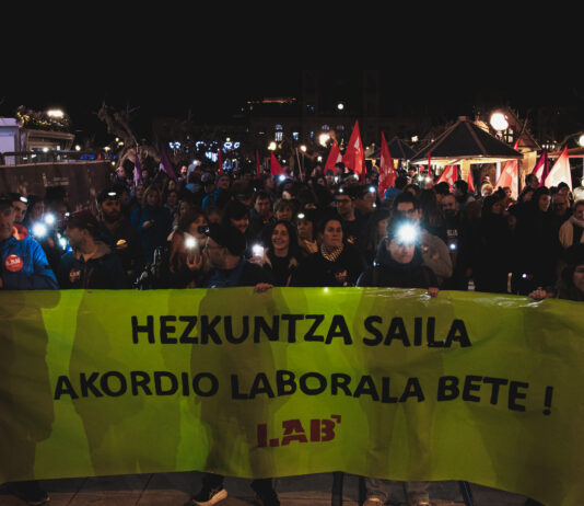 EAEko Ikastolak: LABek deituta giza-kate argitsua egin dugu Donostian, Hezkuntza Sailari Akordio Laborala bete dezala exijitzeko