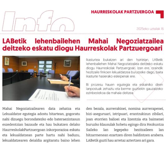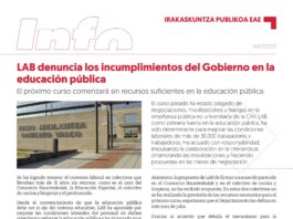 EAEko Irakasleak: Akordioa bere osotasunean betetzen ez den ikastetxeetan mobilizazioak deitu ditu LABek abenduaren 18an