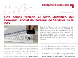 Personal de Servicios de la CAV: Hoy hemos firmado el texto definitivo del Convenio Laboral del Personal de Servicios de la CAV