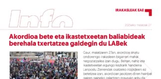EAEko Irakasleak: Akordioa bere osotasunean betetzen ez den ikastetxeetan mobilizazioak deitu ditu LABek abenduaren 18an