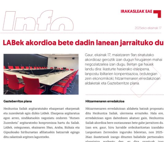 EAEko Irakasleak: LABek hitzarmenaren aldaketak sinatu ditu