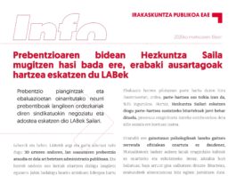 Prebentzioaren bidean Hezkuntza Saila mugitzen hasi bada ere, erabaki ausartagoak hartzea eskatzen du LABek