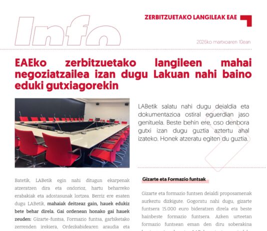 EAEko zerbitzuetako langileen mahai negoziatzailea izan dugu Lakuan nahi baino eduki gutxiagorekin