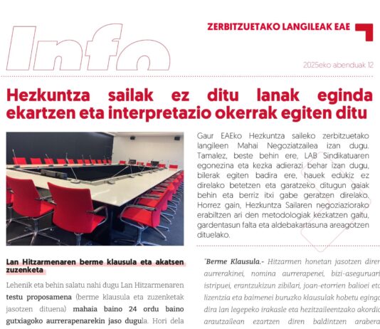EAEko zerbitzuetako langileak: LABetik egin dugun lanari esker Hezkuntza Sailak atzera pausu bat eman eta ratio eta metrajeen inguruan hitzartutakoa betetzen ari da